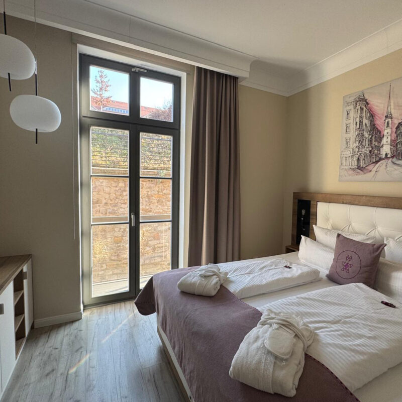 Nutzen Sie unser Doppelzimmer Superior Barrierefrei mit komfortablem Bad und befahrbarer Regendusche. Ideal für Gäste mit Mobilitätseinschränkungen.