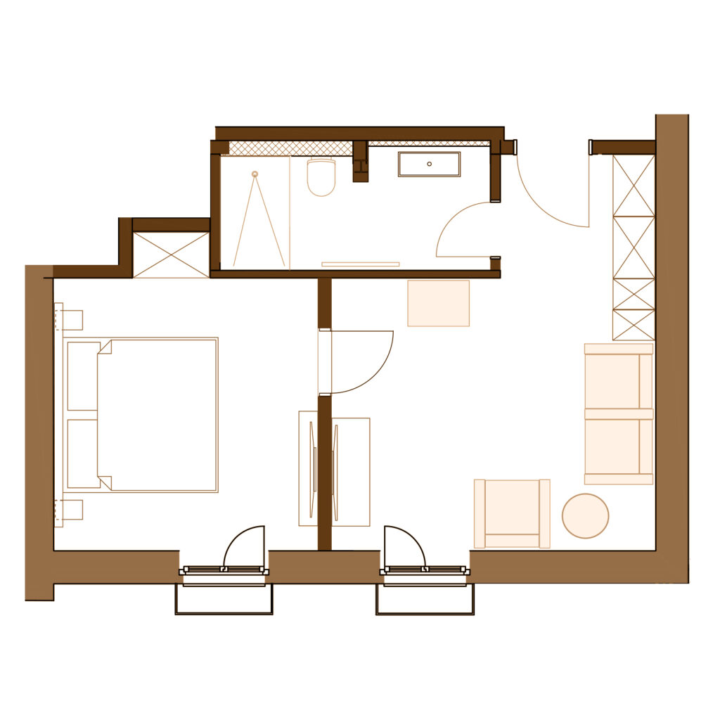 • räumlich getrennter Wohn- & Schlafbereich, begehbarer Kleiderschrank