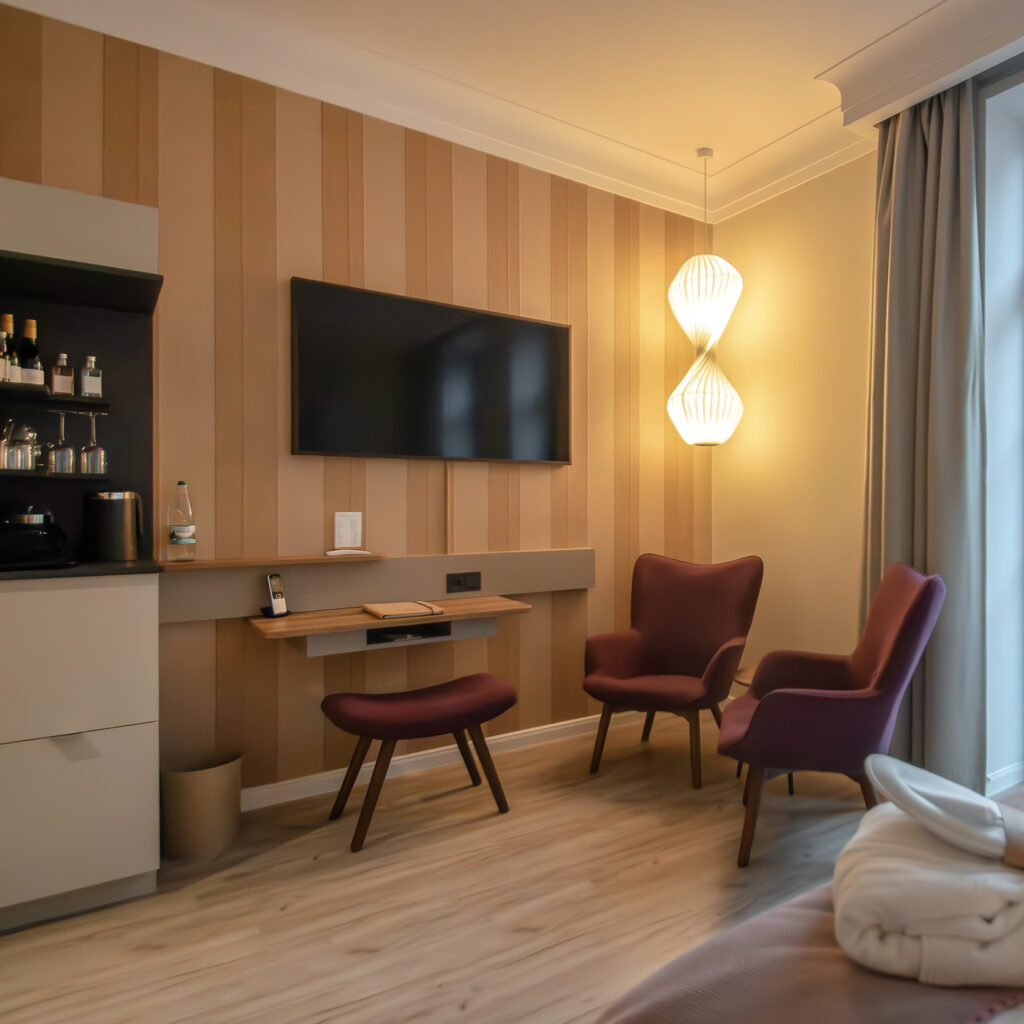 • Minibar, Q-LED-TV, Klimaanlage, Kaffee- & Teestation, WLAN, Eiswürfelbereiter
