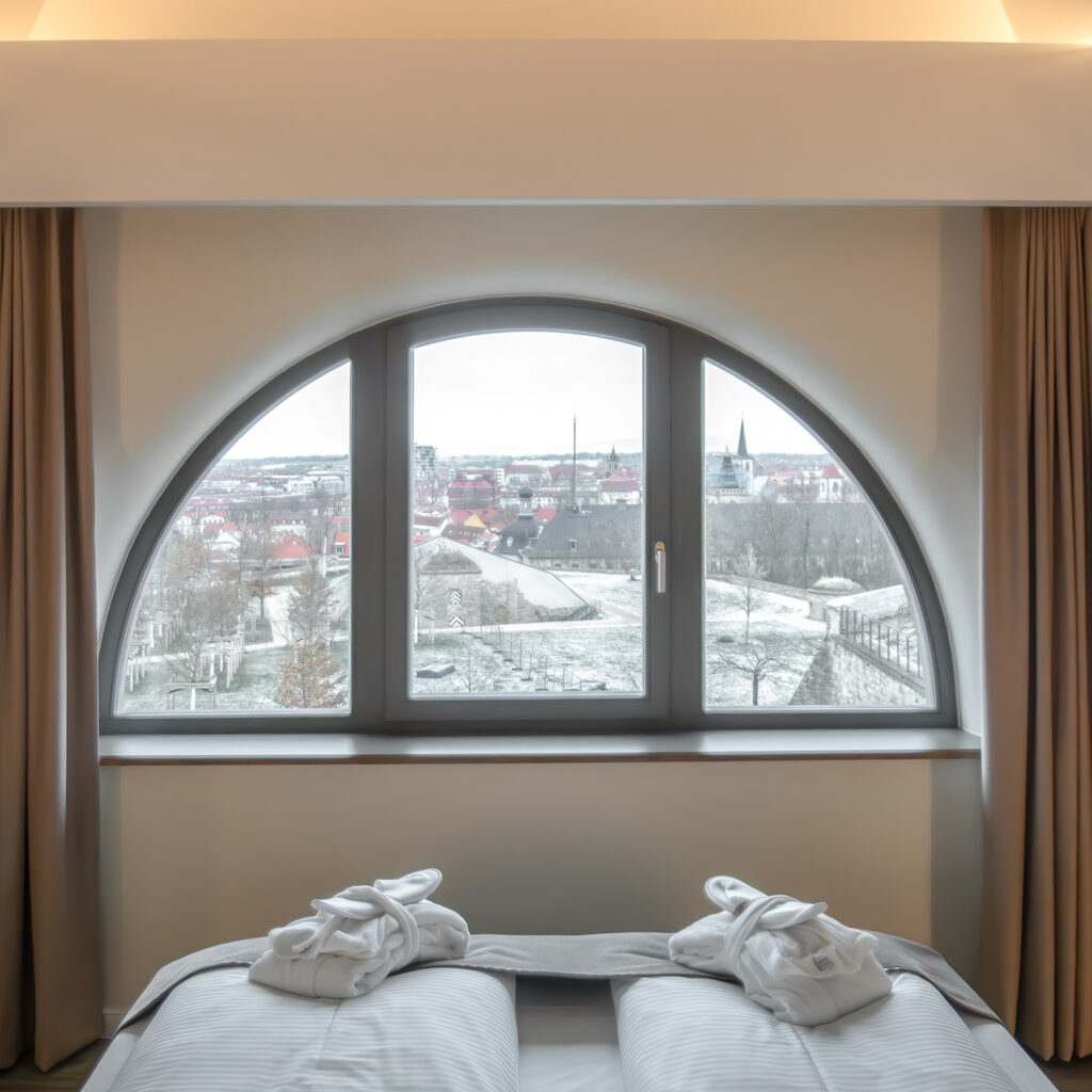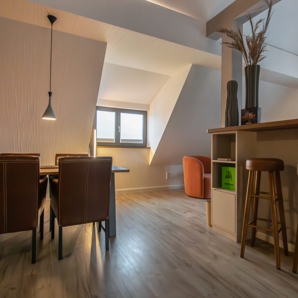 • kombinierter, großzügiger Wohn- & Schlafbereich mit Blick über die Dächer Erfurts