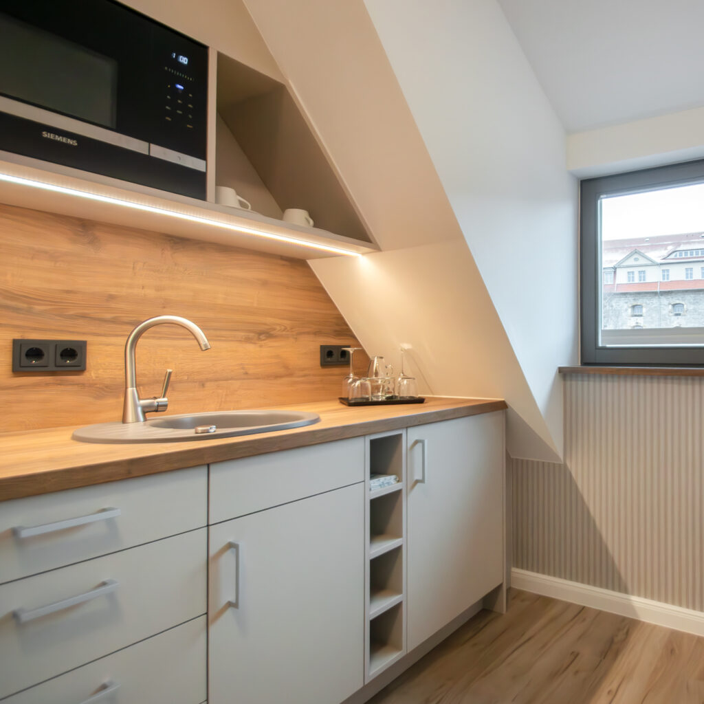 • Pantryküche mit Mikrowelle und Kühlschrank